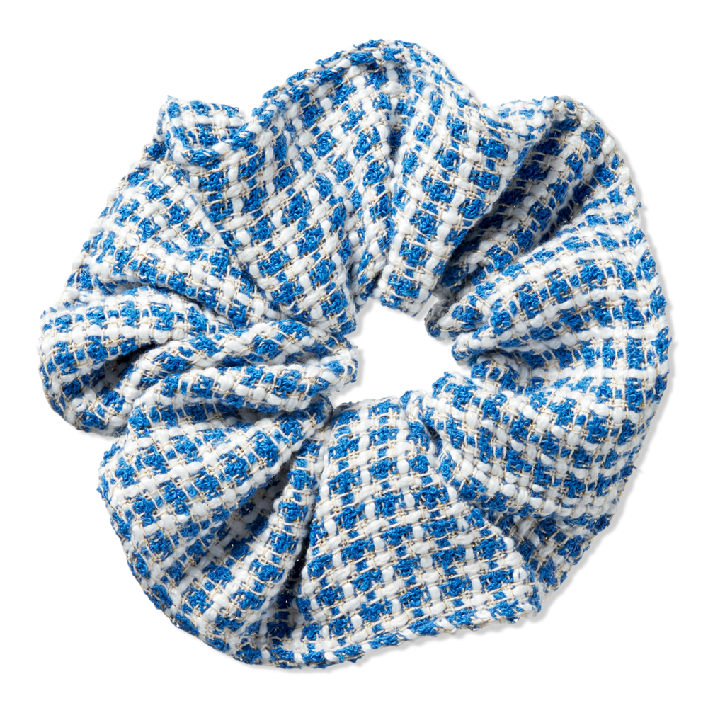 . Features: Classic blue and white tweed for a chic, textured look. Subtle metallic thread adds a hint of shimmer. Soft on hairno snags, dents, or breakage. Strong elastic for a secure, comfortable hold. Perfect for ponytails, buns, or wrist wear. A sophisticated twist on the classic scrunchie. : :