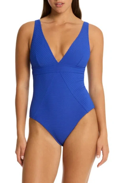 SEA LEVEL Panel Line Multifit One-piece Swimsuit In Blue