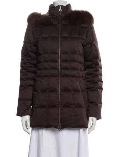 Searle Down Coat Brown With Hood Fur Trim & Stand Collar Short Zip Pockets & Zip Closure Fit: Coats by Searle typically fit true to size. | Searle Down Coat in Brown, Women's US 4 | S