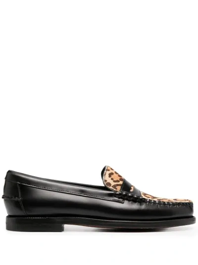 Mocassin Sebago Dan Wild made of smooth leather in Black. Insert embellished with Leopard fur. Mask. Rubber heel. Leather sole. Sole 90% Leather, 10% Rubber 100% Leather Composition: Leather