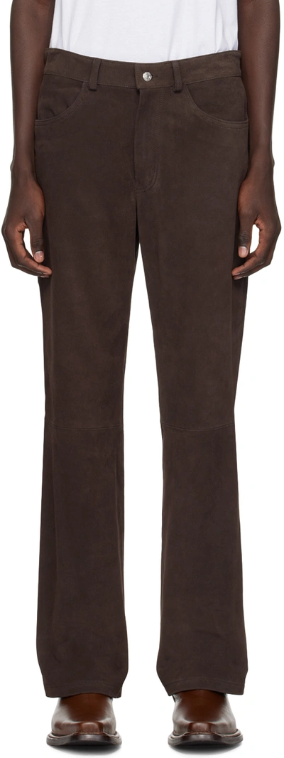 Brushed suede trousers. · Belt loops · Zip fly · Four-pocket styling · Logo patch at back waistband Supplier color: Brown