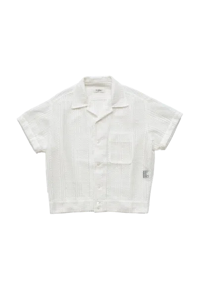 The Second Layer Indio Shirt with a lightweight open weave, classic slightly cropped silhouette, open camp collar, and chest patch pocket. Dual pleats at the back lend it a slight sweep giving it volume throughout the body. Unlined.