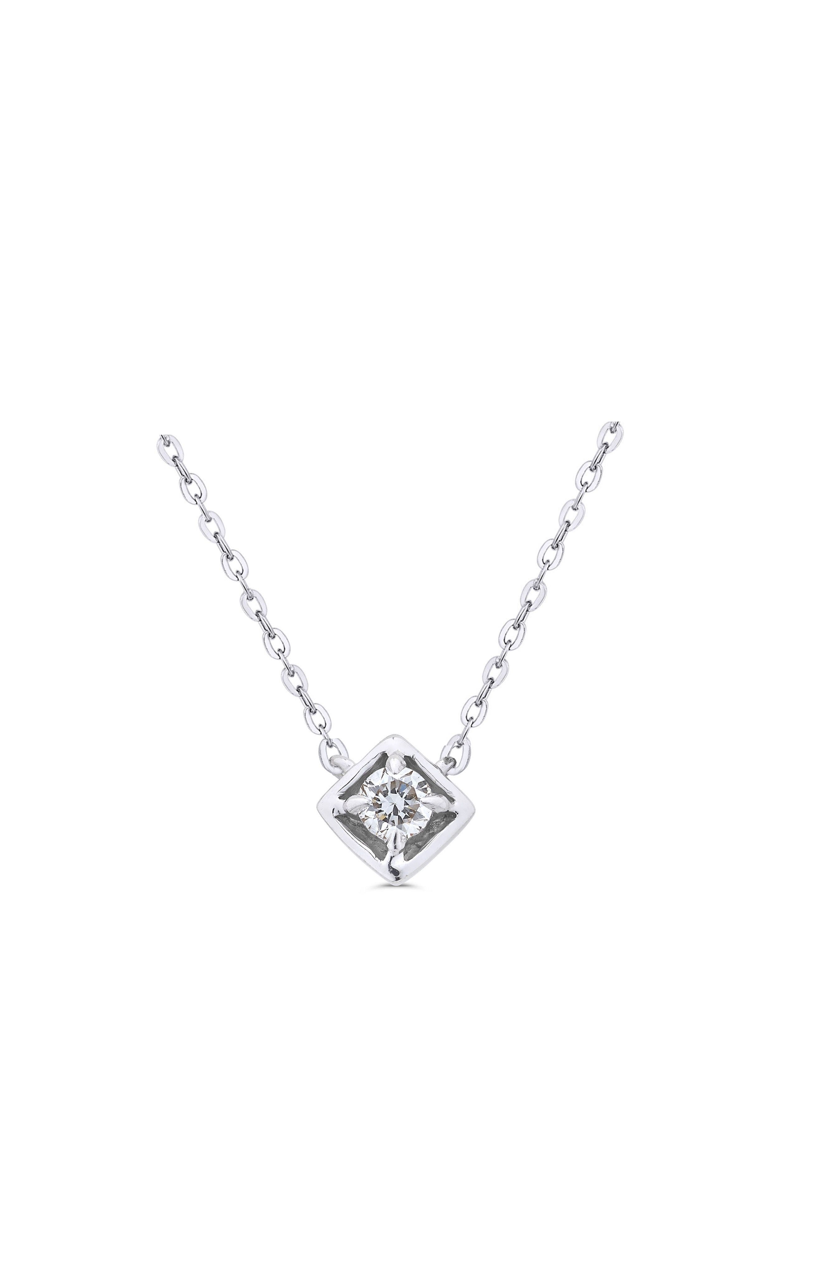 Perfect for layering or solo. Medium square Cup pendant, lab-grown diamond, 0.10 ctw This pendant has a smooth, rounded back for exceptional comfort on your neck. The bold, sharp presence is perfect high up at choker length or longer, layered or alone. Made with love down to every detail. See our HEART engraving on the back. 14.25" - 15.25" - 16.25" adjustable chain. Dimensions: 0.35" long (9mm) Recycled sterling silver, nickel free, rhodium plated