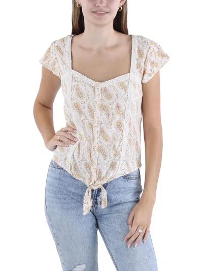 Juniors Womens Front Tie Lace Button-down Top In Multi