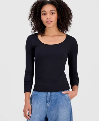 SELF ESTEEM Juniors' Basic Soft Rib Long-sleeve Top In Black
