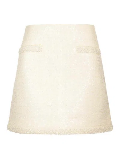 SELF-PORTRAIT Self Portrait Boucle Mini Skirt With Pearls In Neutral