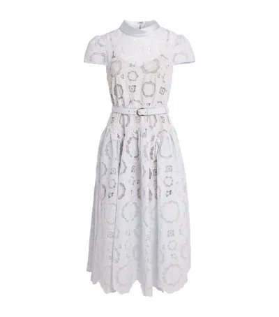 SELF-PORTRAIT Lace Floral Midi Dress In White