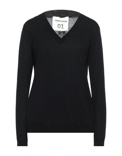 SEMICOUTURE Sweaters. knitted, brand logo, solid color, v-neck, long sleeves, no pockets. 100% Cotton