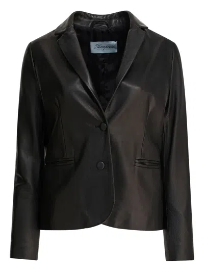SEMPER Buttoned Leather Blazer In Black