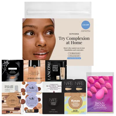 A set including foundation and concealer samples in your shade range†, plus a $10 off voucher for a full-size foundation or concealer.What Else You Need to Know: This set includes foundation and concealer samples in your shade range† to help you explore different formulas, coverages, and finishes. It also features a deluxe Original Beautyblender Makeup Sponge sample and a $10 off voucher to use on any future purchase of a full-size-foundation, full-sized concealer, BB cream, CC cream, or tinted moisturizer at Sephora-even for brands not included in the set.Each sample provides one full-face application.Brands Included: