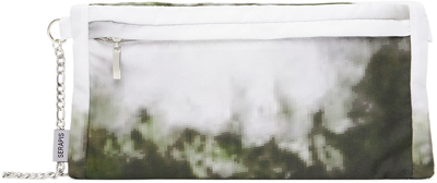 Twill messenger bag featuring graphic pattern printed in tones of green and off-white. · Adjustable figaro chain shoulder strap · Zip pocket at face and back face · Satin lining in gray · H5.5 x W10.75 in Part of the Let The Sea Resound, And All That Is In It: Part 2 (Hippocampus) collection. Available exclusively at SSENSE. Supplier color: Hull moss