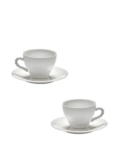white polished finish bobble-detail handle curved silhouette tea and coffe cup and matching saucer Please refer to the Size & Fit tab to learn more about this item's dimensions.