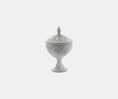 The 'Josephine' bonbonniere is a tribute to fashion designer Kris Van Assche's beloved grandmother. The design juxtaposes the raw, industrial quality of concrete with delicate detailing and a graceful silhouette. This tall, elegant piece in natural gray features impressions that mimic diamond cuts in vintage crystal trinket dishes. Elegant and surprising, this charming object by Serax can be used to store small precious items of jewelry.