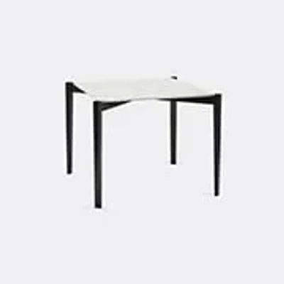 Ann Demeulemeester's stackable wooden 'Éloïs' table for Serax blends practical space-saving with aesthetic beauty. Tapered legs, visible architecture and a square surface come together in a design with a distinctly retro feel. Working spaces are elevated by geometric shapes and a black and off-white colorway. Tables are designed to be stacked and combined with stackable stools from the same collection.
