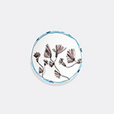 The meeting of two design heavyweights — Marni and Serax — has culminated in an ultra collectible 120-piece porcelain tableware set that literally brings both brand's artistic visions to the table. Inspired by nature and featuring decal applied flower motifs designed by Marni Creative Director Francesco Risso, each item in the series is cut from glazed fine bone china that is purposely shaped with a slight asymmetry to enhance the quality of the porcelain. This set of two hand-finished serving plates features the 'Camelia Aubergine' motif, a memorable and poignant decoration where a medley of pink blooms take center stage at the heart of each plate, while a light blue rim along the edges adds an extra flourish.