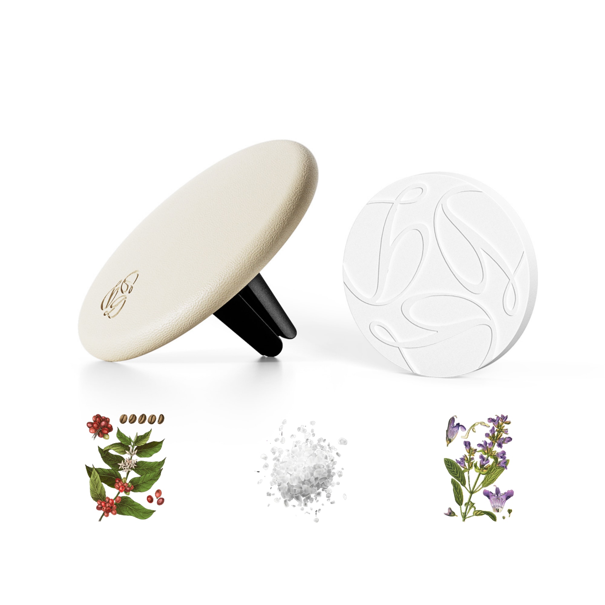 This set includes one lambskin leather case and one Sage scented insert, designed to enhance your driving experience with both style and function. The premium car air freshener features a sleek, round shape and magnetic attachment, making it easy to fit into most car air vents. The luxurious lambskin case adds an elegant touch, making it a perfect gift for car lovers. Infused with organic, plant-based fragrances, the Sage scented insert provides up to 2 months of long-lasting aroma. The adjustable switch lets you control the intensity of the scent for a personalized experience. Refillable inserts offer a sustainable and stylish solution. Sage brings a calming, nature-inspired fragrance: Top Note: Ambrette Seeds – Soft, musky warmth adds refined elegance. Middle Note: Sea Salt – Crisp and invigorating, delivering a refreshing airiness. Base Note: Sage – Woody and earthy, enriching the scent with aromatic warmth.