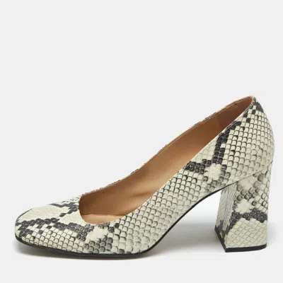 Pre-owned Beige Python Embossed Leather Block Heel Pumps Size 39 In Sand