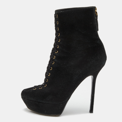 Pre-owned Black Suede Lace Up Platform Ankle Boots Size 39