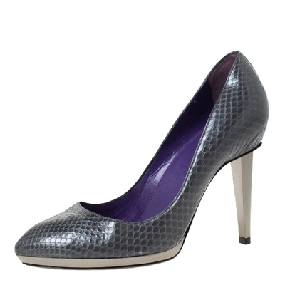 Pre-owned Grey Python Leather Pointed Toe Pumps Size 38