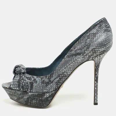 Pre-owned Grey/black Python Knotted Peep Toe Platform Pumps Size 41 In Gray