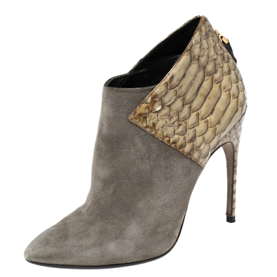 Pre-owned Light Olive Green Suede And Python Leather Ankle Booties Size 39