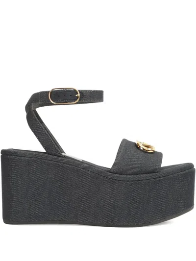 SERGIO ROSSI Logo-plaque Platform Sandals In Blue