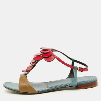 Pre-owned Multicolor Leather Flat Sandals Size 40