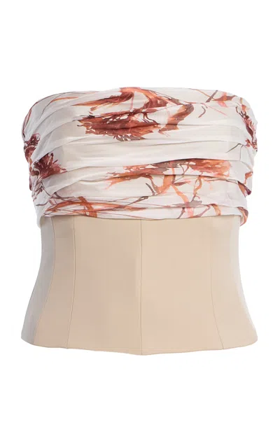 SEV's bridal and guest-of collections are designed with a minimal; yet impactful perspective that resonates understated elegance.Made from lightly boned wool; this strapless top features a printed voile panel that drapes over the bust. Complete the look with the [matching skirt](https://www.modaoperandi.com/women/p/sophie-et-voila/draped-viscose-print-skirt/724373).