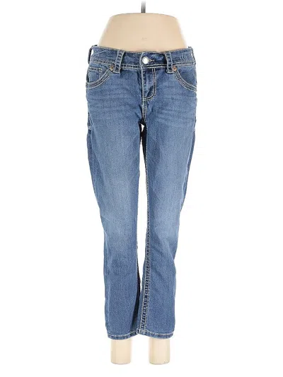 Seven7 Jeans, Size: 8. Item Details: Blue, Hearts Pattern, Medium Wash, Boot Leg, Cropped, Boyfriend, Mid/Reg Rise, Women's Bottoms, Spandex/Polyester/Cotton