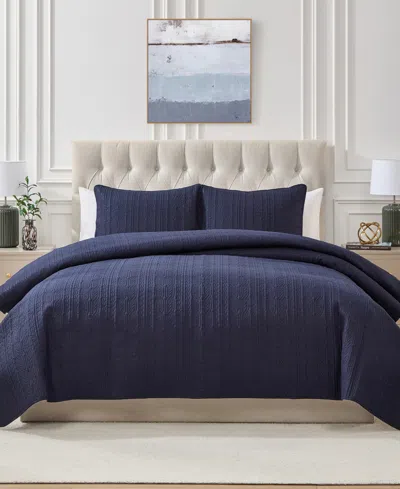 SEVENTH STUDIO Cable-knit Pinsonic Microfiber 2-pc. Quilt Set, Twin In Blue