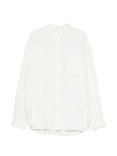 white button fastening chest patch pocket long sleeves buttoned cuffs curved hem
