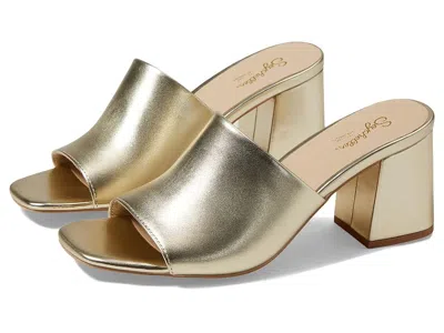 Seychelles Adapt - Women's Shoes : Platinum Metallic Leather : The Seychelles® Adapt is an open-toe sandal set on an inverted stack heel with a cushioned footbed. ; Open square toe. ; Slip-on styling. ; Padded footbed. ; Upper, lining, insole, and outsole made of man-made material. ; Imported. Measurements: ; Heel Height: 2 3 4 in ; Weight: 10 oz ; Product measurements were taken using size 9, width M. Please note that measurements may vary by size. | Seychelles Adapt Women's Shoes Platinum Metallic Leather : 9.5 M