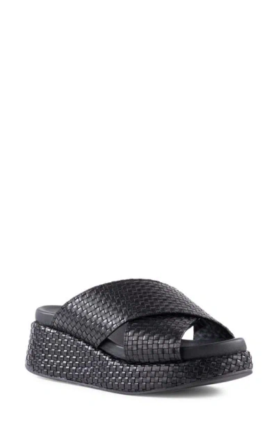 Woven leather upper and platform heel Leather insole, lining Rubber sole Slip-on styling Imported Key West Woven Platform Slide Sandals by Seychelles in Black, Women's, Size: 9.5, Leather/Rubber at Anthropologie