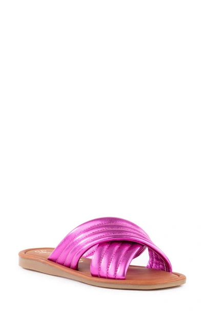 Introducing the Seychelles Word For Word Leather Sandal, a stylish and versatile addition to your summer footwear collection. Crafted with the utmost attention to detail, this sandal embodies the feminine essence that Seychelles is known for, featuring vintage-inspired silhouettes and delicate accents.Made from genuine pink leather, these sandals offer a luxurious look and feel. The slip-on styling ensures easy and effortless wear, making them perfect for everyday use or special occasions. The lightly padded insole provides all-day comfort, allowing you to stay on your feet without discomfort.Designed with practicality in mind, these sandals feature a man-made sole that offers stability and durability. The 0.75-inch heel and 0.5-inch platform provide a subtle lift, enhancing your posture and elongating your legs. Please note that all measurements are approximate and were taken from a size 6, allowing slight variations in sizing. Step out in confidence and style with the Seychelles Word For Word Leather Sandal, a high-quality accessory that effortlessly combines fashion and comfort. Made in Italy, this sandal showcases the impeccable craftsmanship and attention to detail that the country is renowned for. Add these stunning sandals to your wardrobe and experience the charm of Seychelles.