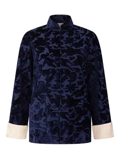 SHANGHAI TANG Jacquard-pattern Jacket In Blue