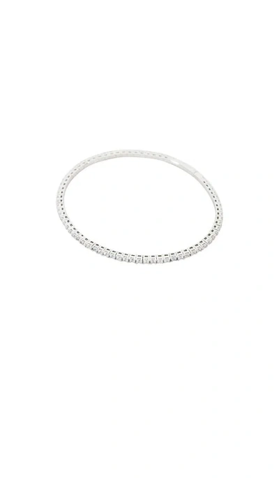 SHASHI Bianca Flexi Bangle Bracelet in Metallic Silver. SHASHI Bianca Flexi Bangle Bracelet in Metallic Silver. Crystal embellished silver-tone metal bracelet. Clasp closure. Measures approx 2.25 in diameter. SHAS-WL1294. SH-B533. In 2009, designers Yuvi Alpert and Danna Kobo debuted Shashi, an everyday jewelry line that holds to the unique quality of their luxury brand Ruby Kobo. As the free-spirited, bohemian-inspired sister collection to their main line, Shashi is fraught with dainty jewels and beaded pieces, architectural rings, and bright friendship bracelets. Pile them on or wear them alone for a style that is all your own.