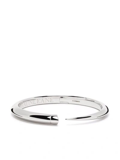 sterling silver Tusk open bangle from SHAUN LEANE featuring internal logo stamp, open cuff design and hinge-pin fastening.