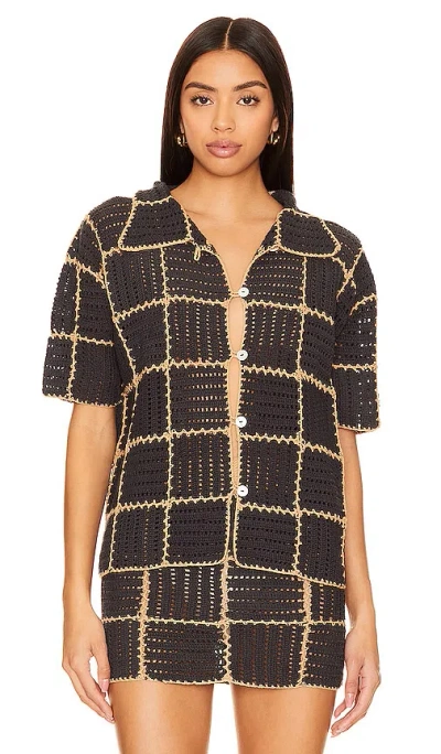 SHE MADE ME Edith Patchwork Shirt in Charcoal. - size L (also in M, S, XS) SHE MADE ME Edith Patchwork Shirt in Charcoal. - size L (also in M, S, XS) 100% cotton. Made in Indonesia. Hand wash. Front button closure. Midweight crochet knit fabric. Item not sold as a set. Garment is made with a semi-sheer fabric, undergarments can show through. SHEM-WS2. SMM2188_24_CHARCOAL. Designed for everything from white sand beaches to backyard fetes, SHE MADE ME is an authority on the crochet bikini. Having crafted triangle tops, halter tops, bandeau styles, skimpy bottoms and more, the line has perfected the fit and shown a commitment to detail with beautifully handmade pieces. But SHE MADE ME does not only limit their talent to bikinis, their line of fashion tops and bottoms is equally enchanting.