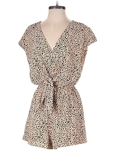 She + Sky Romper, Size: Small. Item Details: Tan, Animal Print Pattern, V Neck, Boot Leg, Short Sleeve, Women's Dresses