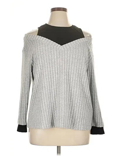 Shein Curve Pullover Sweater, Size: 0X. Item Details: Gray, Cold Shoulder Neckline, Long Sleeve, Cut Outs, Women's Tops, Polyester/Elastane