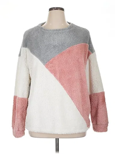Shein Curve Pullover Sweater, Size: 14. Item Details: Pink, Color Block Pattern, Crew Neck, Long Sleeve, Shearling, Women's Tops, 100% Polyester