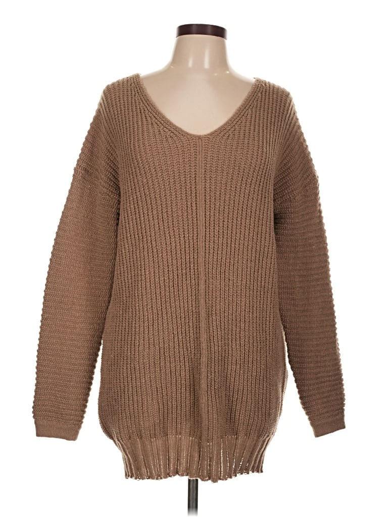 Shein Pullover Sweater, Size: Large. Item Details: Brown, V Neck, Long Sleeve, Women's Tops, 100% Polyester