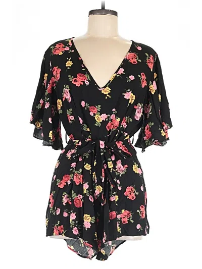 Shein Romper, Size: Large. Item Details: Black, Floral Pattern, V Neck, Short Sleeve, Print, Women's Dresses, 100% Rayon