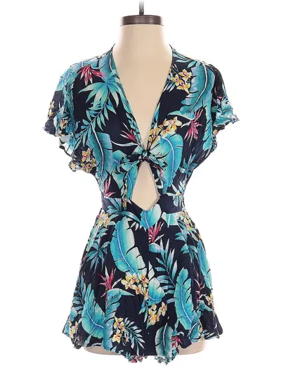 Shein Romper, Size: X-Small. Item Details: Blue, Tropical Pattern, Keyhole Neckline, Flared Leg, Short Sleeve, Cut Outs, Women's Dresses