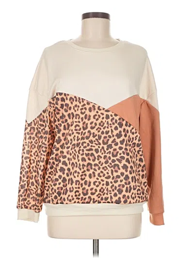 Shein Sweatshirt, Size: 6. Item Details: Tan, Animal Print Pattern, Crew Neck, Long Sleeve, Women's Tops, 100% Polyester
