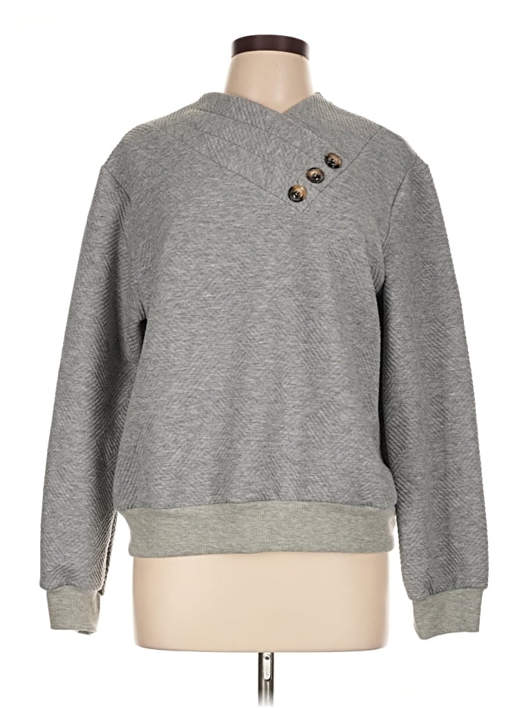 Shein Sweatshirt, Size: Large. Item Details: Gray, Collared Neckline, Long Sleeve, Women's Tops, 100% Polyester