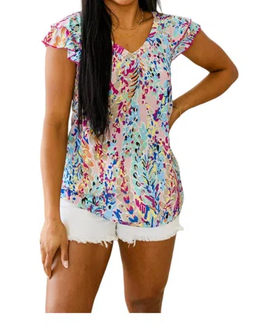 SHOPIN IN LA Let's Talk Flutter Sleeve Top In Multi Color