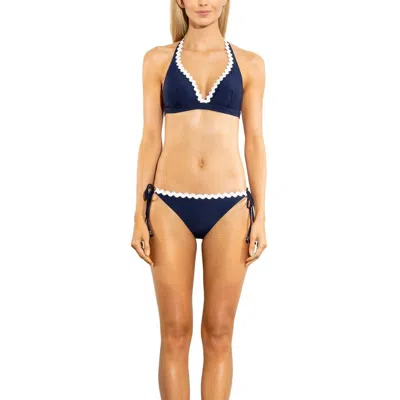 SHOSHANNA Solid Scallop String Bikini Bottom In Navy In Blue
