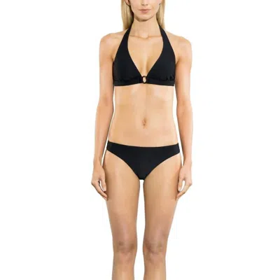 SHOSHANNA Solid Textured Classic Bikini Bottom In Jet In Multi