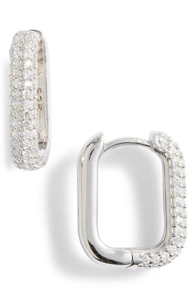 Pavé Box Hoop Earrings In Silver